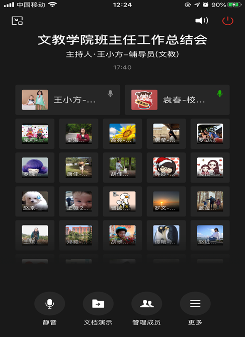为更好地总结学院本学期班主任工作,6月24日中午,文化与教育学院通过企业微信召开本学期期末班主任工作总结会。文化与教育学院直属党支部副书记邓毅、学院院长助理史海静以及担任学院班主任的全体教师参加了本次会议。会议由辅导员王小方主持。