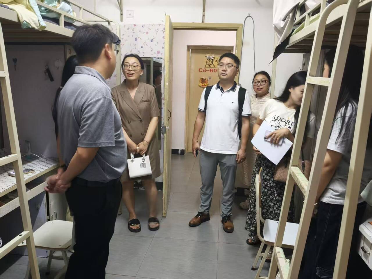 为深入了解2025级新同学的生活适应状况,倾听新生的需求与建议,传递学校的关怀与温暖,9月7日晚,西南财经大学天府学院校长助理李锐、文化与教育学院分党委书记邓毅、副院长史海静、羊媛、副书记王丹、院长助理徐哲以及学院新生辅导员,共同深入新生寝室走访送关怀。