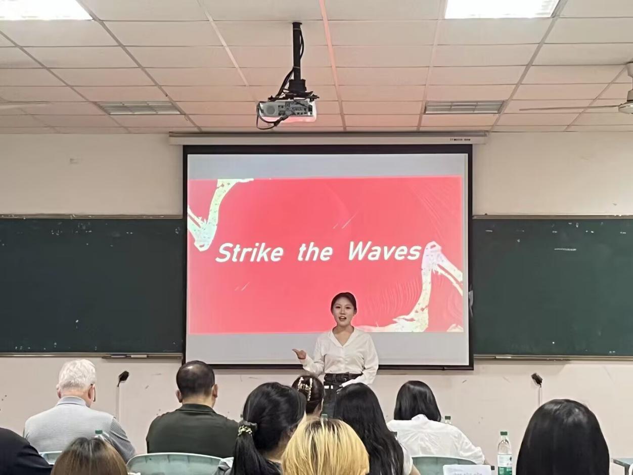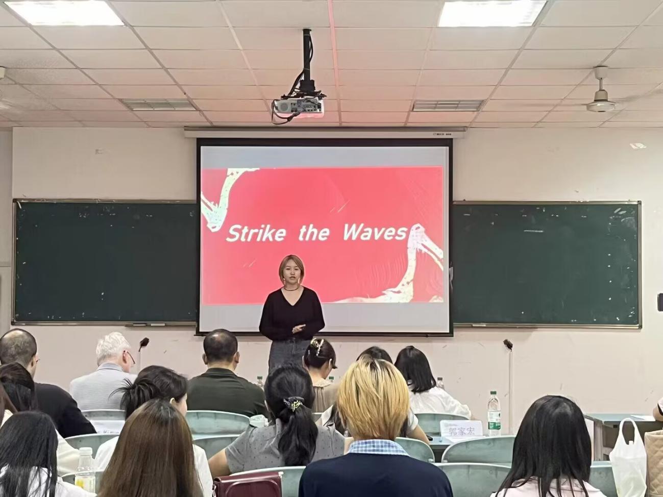 活动伊始,主持人蒲欣妤对赛事背景作了简要介绍,她讲到,“外研社·国才杯”作为全国性高水平英语赛事,不仅是语言能力的竞技平台,更是青年学子展现自我、拓展视野的重要窗口。比赛中,选手们围绕既定主题展开演讲,有的结合成长经历,阐述英语学习对拓宽认知边界、增强跨文化沟通能力的作用;有的聚焦社会热点,以个人成长为例,生动诠释了“从点滴突破到伟大飞跃”的深刻内涵;针对“为何要学好英语”这一核心问题,选手们从个人成长、国家战略到文明互鉴层层递进,深刻阐释了英语能力是连接中国与世界、向全球讲好中国故事的重要桥梁。
