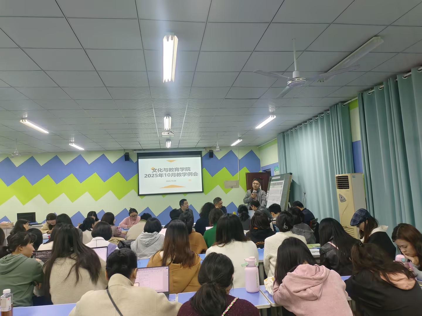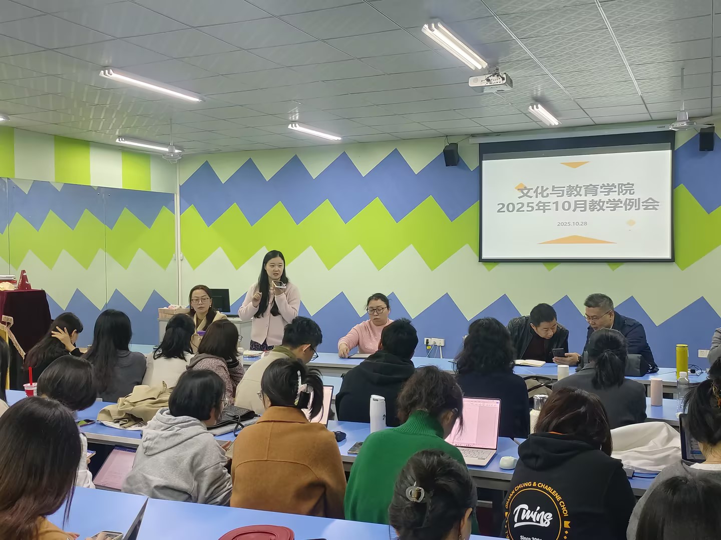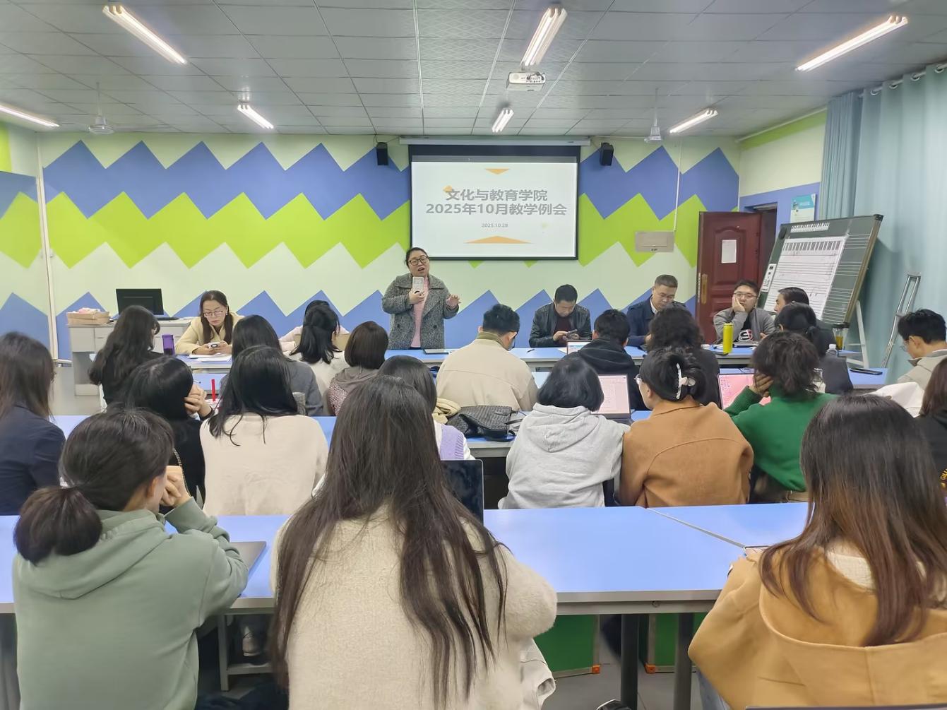 10月28日下午,文化与教育学院在三教声乐室顺利召开了10月教育教学工作会议。学院执行院长史正刚、分党委书记邓毅、副院长史海静、张维、分党委副书记王丹、院长助理徐哲及全体教职工参加。