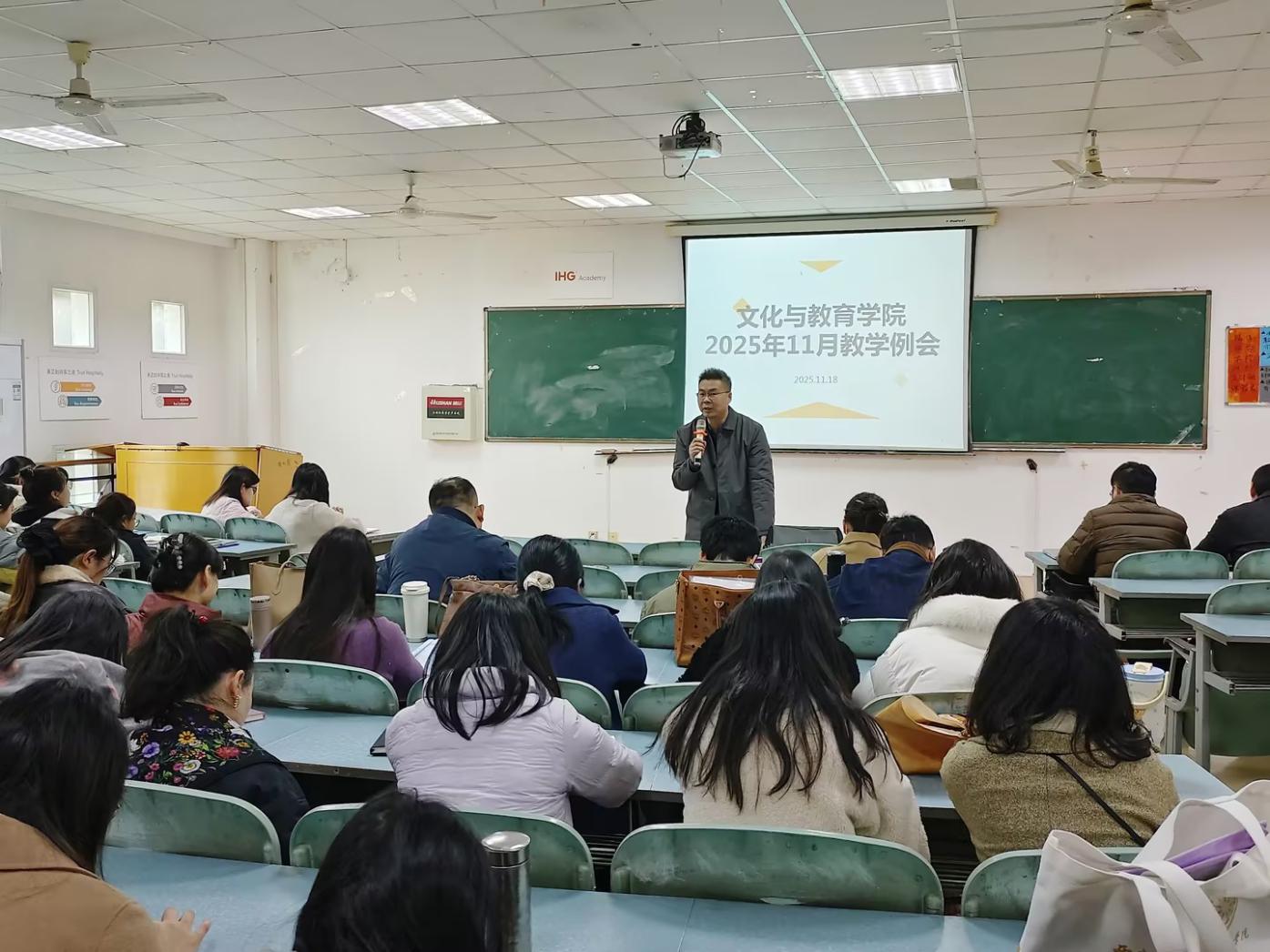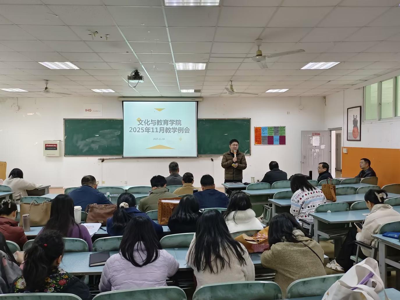 11月18日下午,文化与教育学院在二教2306教室顺利召开了11月教育教学工作会议。学院执行院长史正刚、副院长史海静、张维、分党委副书记王丹、院长助理徐哲及全体教职工参加。会议围绕师资队伍建设、专业建设与评估、科研水平提升、学生培养质量等核心议题进行了深入研讨和全面部署,旨在凝聚共识,明确下一阶段学院高质量发展的路径与任务。