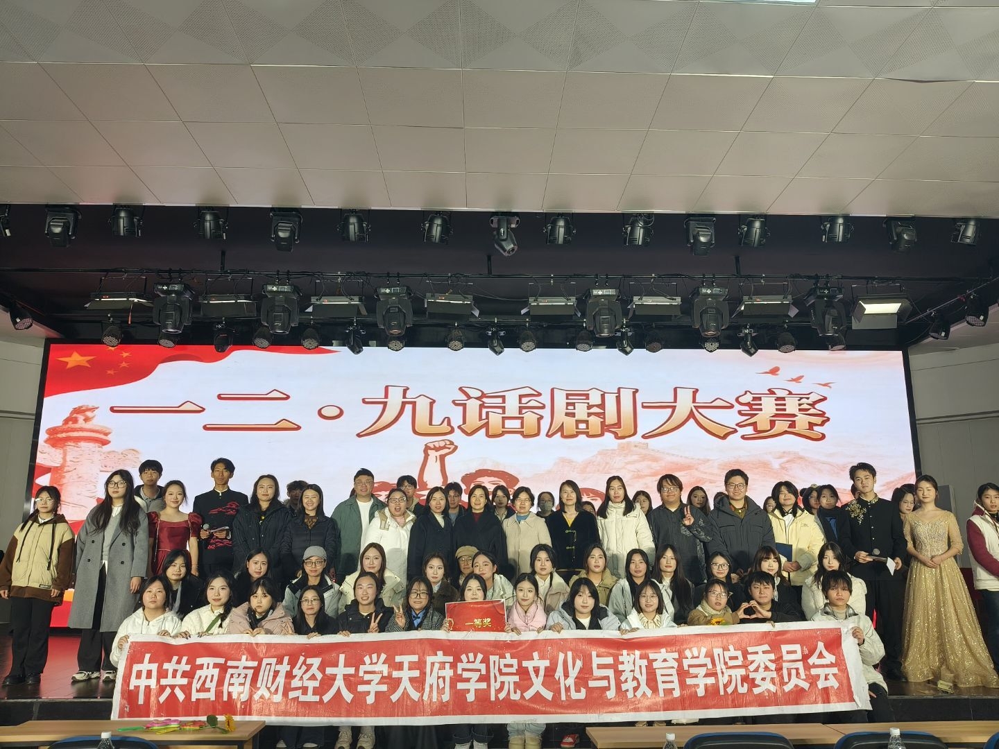 为培养青年学生的爱国情怀和责任担当,重温红色经典,感悟精神力量,12月5日晚,文化与教育学院在学术报告厅顺利举办了以“传承一二·九薪火,谱写时代新篇”为主题的话剧大赛。出席本次大赛的嘉宾有西南财经大学天府学院党委宣传部部长、党委工作部常务副部长罗文,学生工作部副部长颜芳,党委工作部组织科科长裴怡,文化与教育学院分党委书记邓毅、学工办副主任王娟、辅导员穆长霞,担任评委的是西南财经大学天府学院党委宣传部新媒体中心主任宁梦茜、智能科技学院第四党支部书记吴雪娇、文化与教育学院教师党支部书记李明奇、马克思主义学院教师邓海霞、体育学院辅导员彭雪芊以及校党建服务中心学生代表艾程杰、宋佳雨。