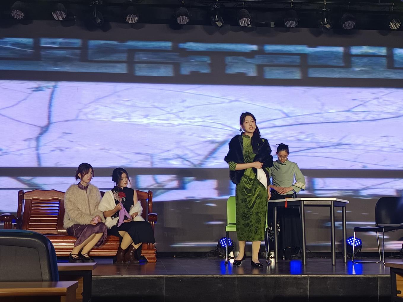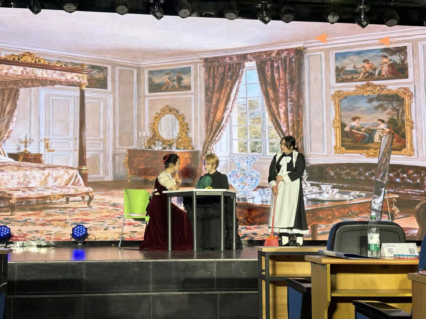 决赛现场节奏紧凑、演绎精彩。各参赛剧目在融合中外经典文学内核的同时,融入了鲜明的自主创作,在台词设计、舞台呈现与团队协作上各具匠心。评委于每组表演后进行专业点评,从剧本结构到舞台表现给予改进建议;互动环节则通过趣味问答激发观众参与,使台上台下沉浸于戏剧氛围之中。经激烈角逐,《新琵琶行》斩获一等奖,《项链》《伶官之喻宝黛生嫌》获二等奖,《午梦奇缘》《玩偶之家》《金锁记》获三等奖。大赛在掌声中圆满落幕,充分展现了学院学子的人文素养与艺术创造力。