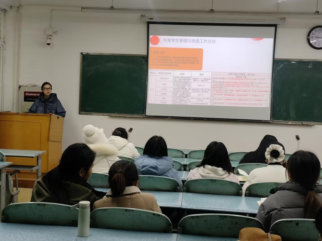 为系统回顾过去一年学生工作成效,进一步提升育人水平与管理能力,1月16日下午,文化与教育学院学工办在一教1105教室组织召开了2025年度辅导员工作总结交流会,学院分党委书记邓毅、副书记王丹、学工办副主任王娟及全体辅导员参加。