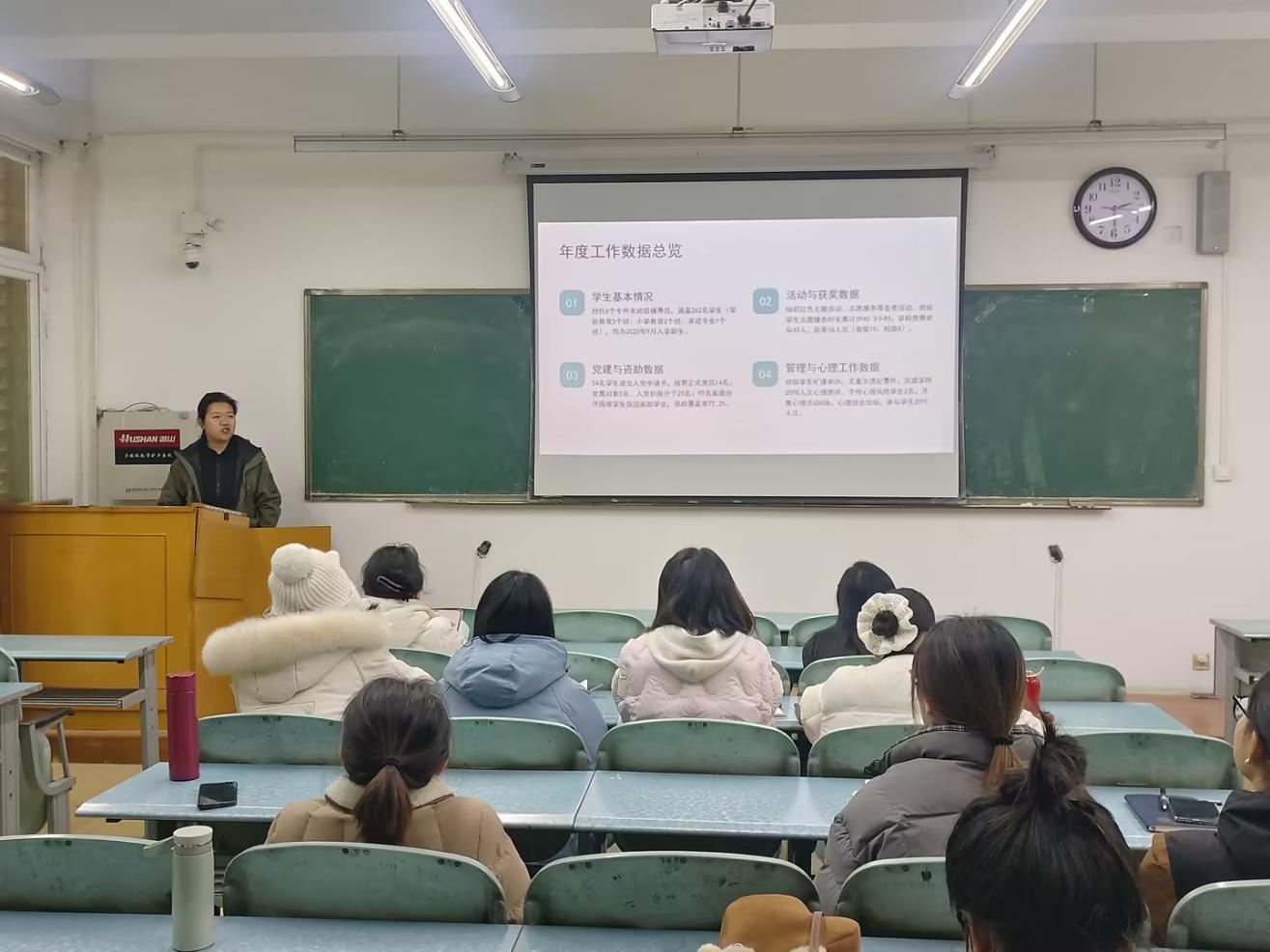 会上,各位辅导员结合所带班级具体情况,依次进行了系统汇报。在班情介绍与班风建设方面,大家分享了通过主题班会、谈心谈话、榜样引领等方式,营造积极向上、团结互助班级氛围的具体举措。在学风促进上,重点介绍了学业预警、帮扶机制、科研竞赛动员、诚信养成等方面的有效做法。安全管理环节,各位辅导员汇报了常态化安全教育、隐患排查、心理关注及突发事件预防与处置流程。在家校联系方面,则交流了如何通过定期沟通、信息共享等创新方式,构建协同育人合力,特别是在特殊学生群体关爱上取得的积极进展。此次汇报内容详实,案例具体,充分展现了一年来辅导员们在学生思想引领、成长服务和日常管理中的扎实工作与思考。