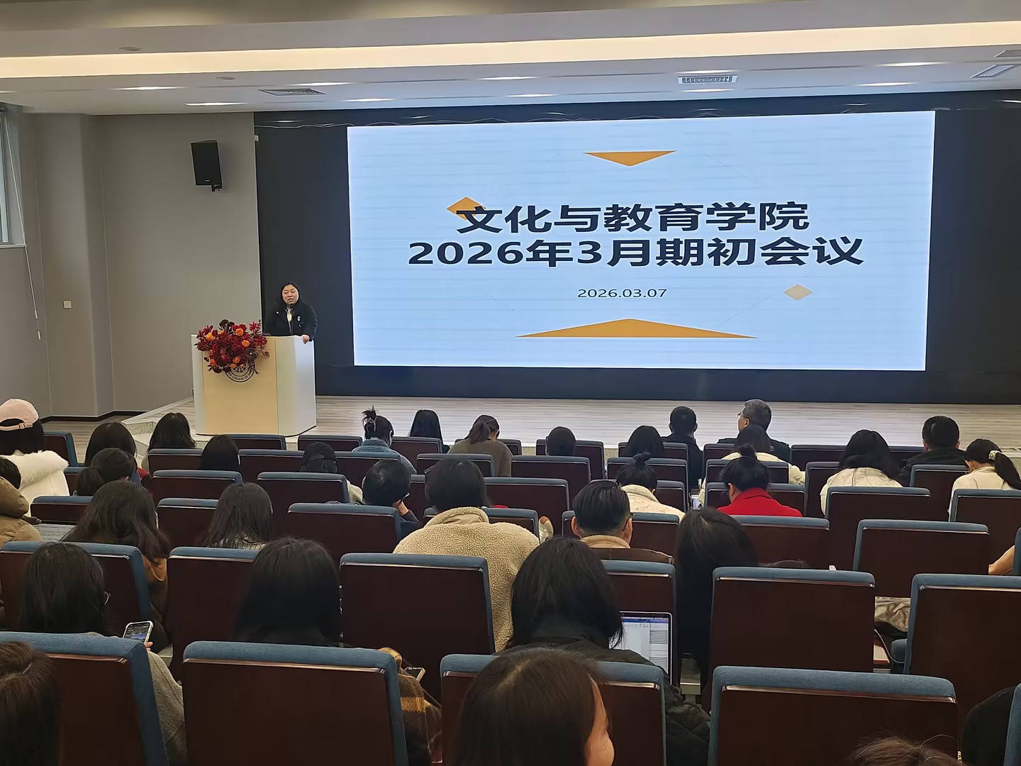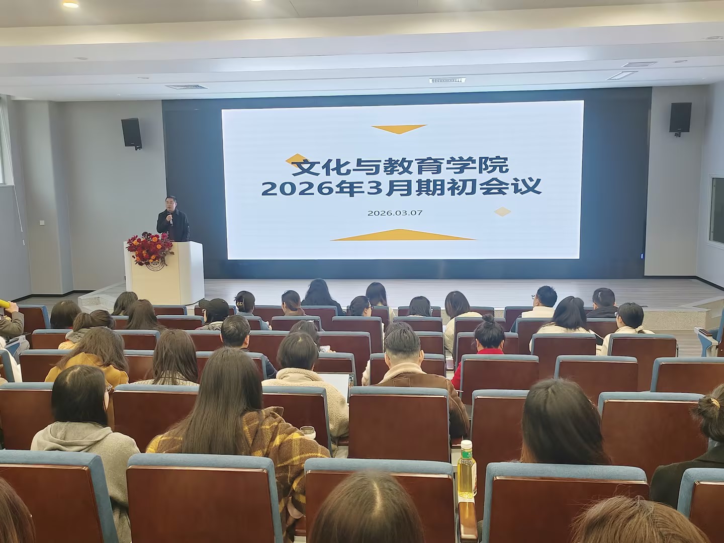 3月7日上午,文化与教育学院在五教5103教室召开了2026年春季学期期初工作会议。学院执行院长史正刚,分党委书记邓毅、副书记王丹,副院长史海静、张维,院长助理徐哲、学工办副主任王娟及全体教职工参加。