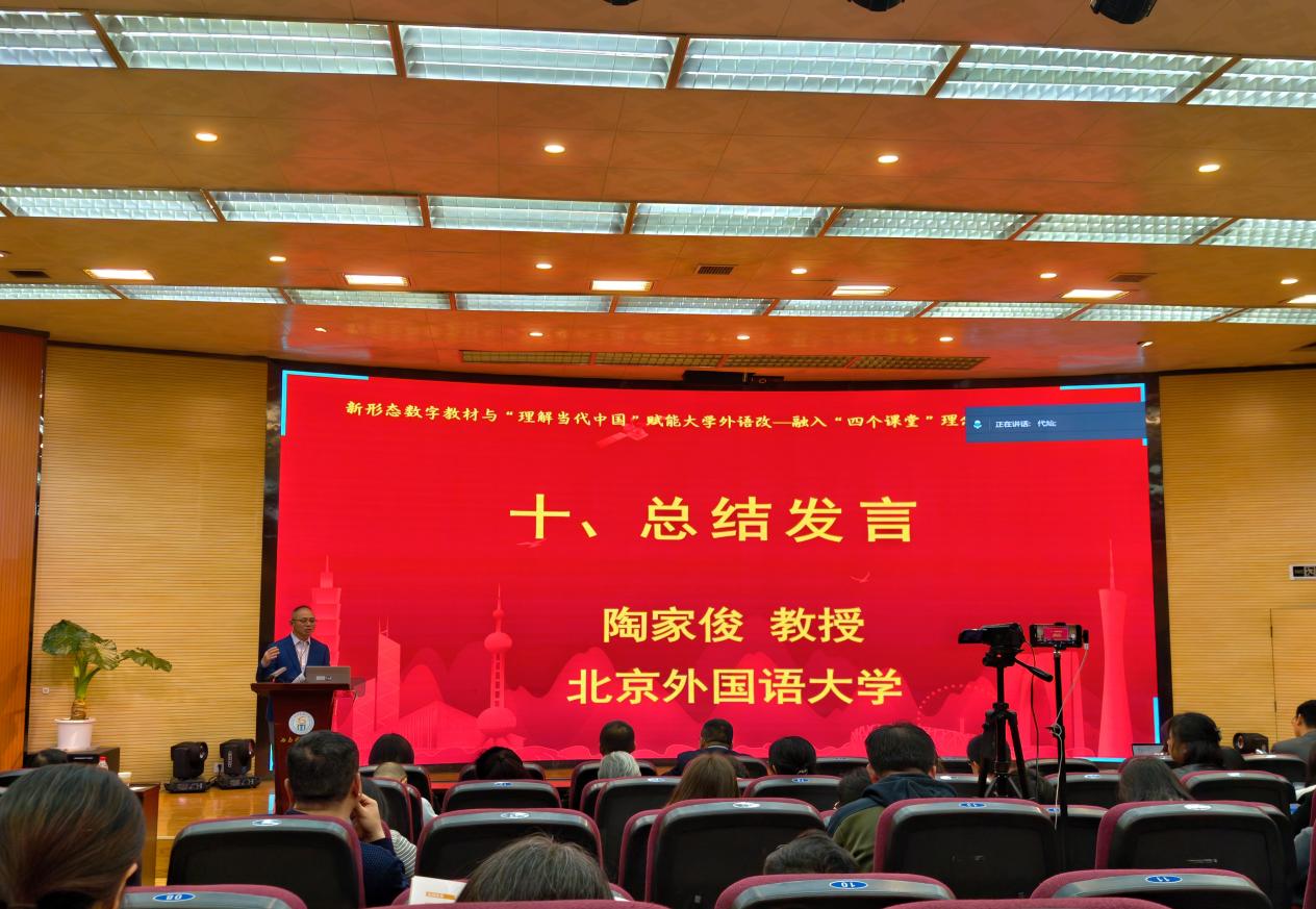 本次活动聚焦新形态数字教材的创新应用与“理解当代中国”系列教材的教学实践,依托《新编大学应用英语综合能力提升教程》和《理解当代中国 大学英语综合教程》两套教材,通过专题研讨、开放课堂观摩、说课评课等多元环节,系统展示了“四个课堂”理念在外语教学中的深度融合。来自全省多所高校的外语教育专家与骨干教师共同参与,围绕数字时代的外语教学改革展开深入交流。