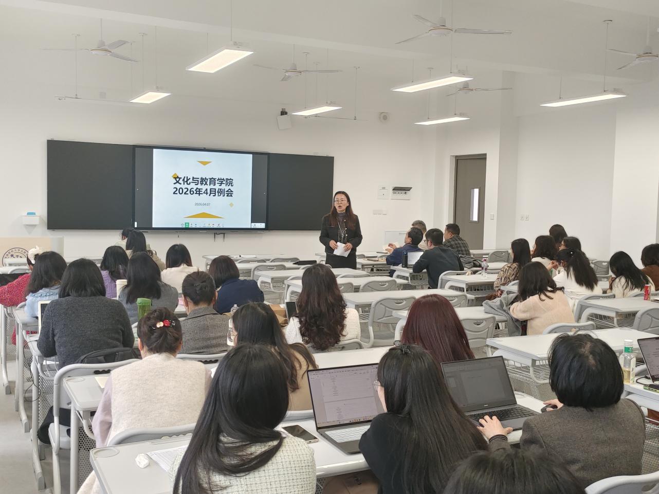 为深入推进教育教学改革,落实人工智能赋能教学创新,统筹部署近期重点工作,4月7日下午,文化与教育学院在四教4407召开了4月教育教学工作会议。学院执行院长史正刚,分党委书记邓毅,副院长张维、史海静,分党委副书记王丹,院长助理徐哲及全体教职工参加。