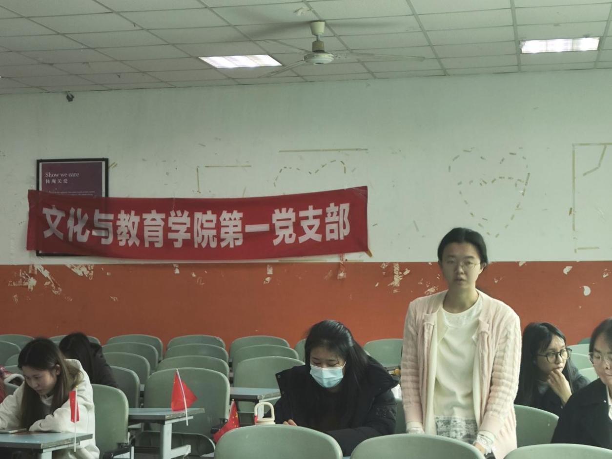为引导青年学子深刻把握社会主义现代化强国总的战略安排,汲取先进力量,肩负青年党员的使命,文化与教育学院第一党支部于11月7日中午在二教2306教室召开了以“学悟二十大精神,勇担青春使命”为主题的十一月党员学习会。本次会议由罗心悦主持,文化与教育学院第一党支部部分入党积极分子共同参与。