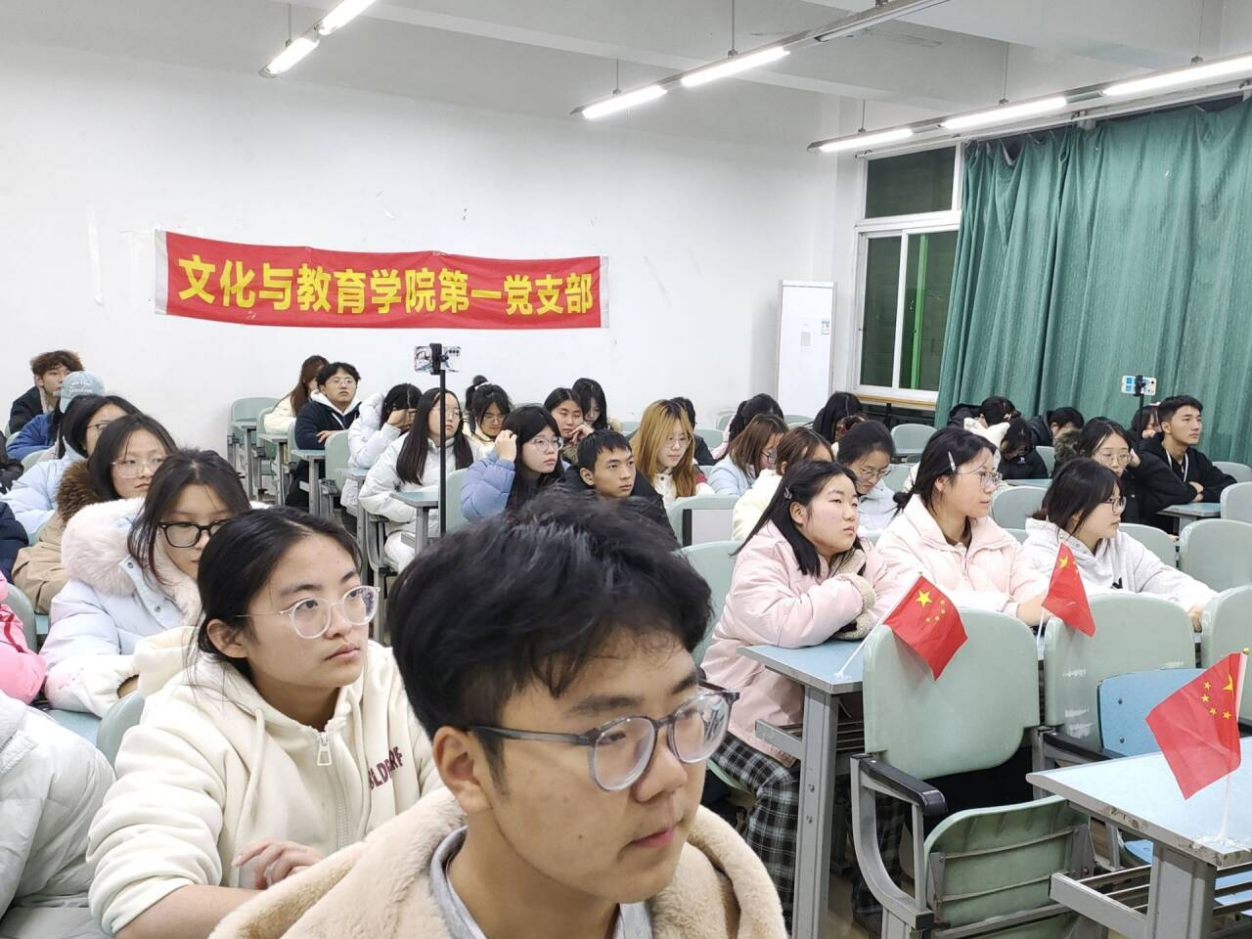 为深入学习贯彻党的二十届四中全会精神,引导学院青年准确把握“十五五”规划的核心要义,自觉将个人发展融入国家大局,文化与教育学院第一党支部于11月19日晚在二教2305教室及企业微信开展了以“学习贯彻党的二十届四中全会精神,为实现‘十五五’规划目标努力奋斗”为主题的十一月主题党课。本次党课由文化与教育学院辅导员彭金艳老师主讲,第一党支部全体党员、入党积极分子和入党申请人共同参与。