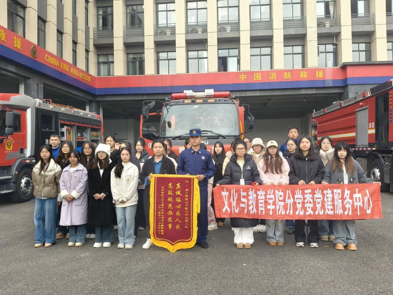 为切实筑牢校园安全屏障,进一步提升师生安全防范意识,文化与教育学院第一党支部于11月21日下午在绵阳科技城新区消防救援大队开展“筑牢安全防线,共护平安校园”进消防安全宣传活动。此次活动由辅导员穆长霞带队,学院第一党支部部分预备党员和积极分子及工作人员共同参与。