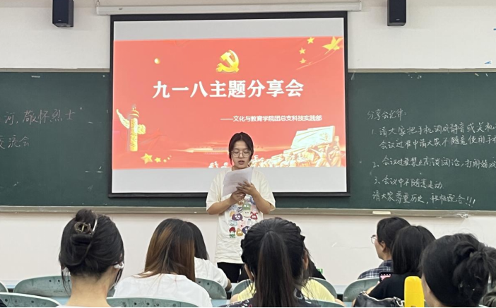 为了引导青年学子铭记历史、缅怀先烈、珍爱和平,激发爱国热情,文化与教育学院于9月18日晚在2304教室举办了“血色山河,敬怀烈士”活动,以纪念“九一八”事变92周年,学院2022级、2023级部分学生参加。