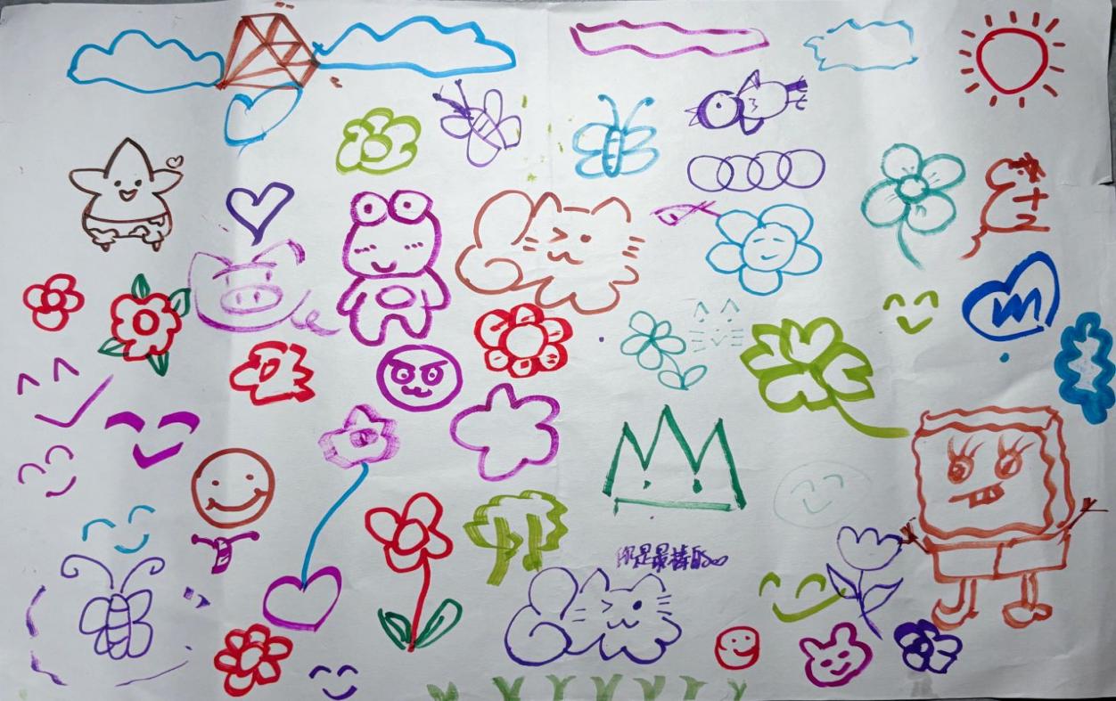活动现场,同学们在工作人员的引导下,拿起画笔,在画布上接力绘制表达情绪、关注心理健康的创意图案。每一笔色彩,都是内心世界的真实流露;每一幅画面,都传递着温暖与关怀。同学们或凝神构思,或挥洒涂抹,在共同创作中不仅完成了视觉艺术的共创,更完成了一次无声的心灵对话与温暖联结。同学们的共绘作品中的可爱小图案充满童真童趣,反映了大家内心的天真烂漫。活动中,工作人员还围绕心理健康知识设置了趣味问答环节,引导同学们在轻松互动中增强对情绪管理、人际交往等心理议题的理解。现场气氛热烈,同学们在绘画与问答中释放情绪、联结彼此,共同营造了关注心理健康的良好氛围。