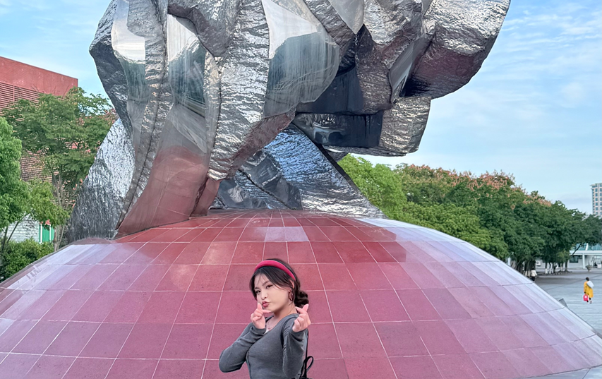 活动开始,同学们根据活动要求,奔赴各地标开启拍摄之旅。在教学楼前,文化与教育学院杨佩同学与金属镂空结构的校园艺术雕塑合照,脸上洋溢着喜悦;在光华广场“聚散”雕塑前,印慧同学俏皮可爱的表情与动作尽显青春活力。同学们的每一照片无不体现着对校园的喜爱与对生活的热爱。此外,商业街互动点的校史校情问答环节气氛热烈,大家对校训校规对答如流,展现了扎实的知校爱校荣校意识。