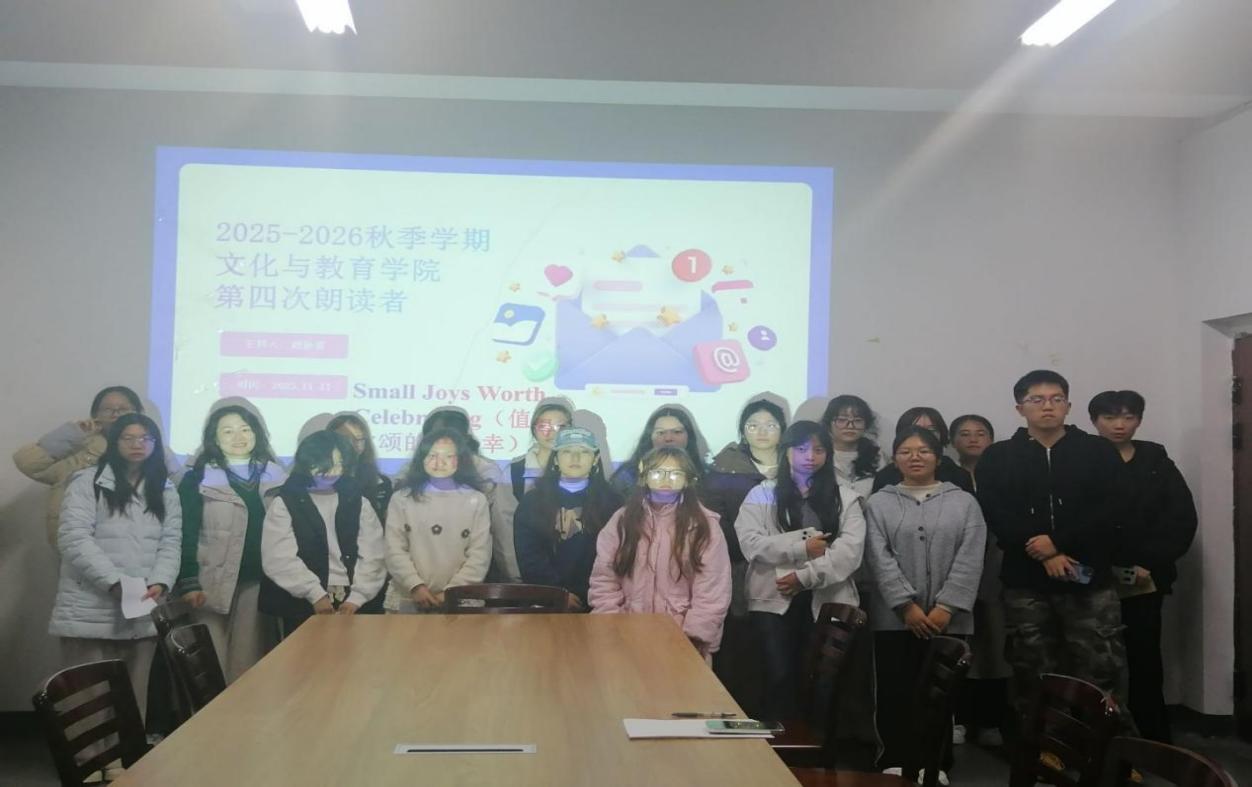 为点燃学生对英语阅读的兴趣,树立内在自信,助力同学们充分释放英语朗读的独特魅力,11月11日晚,由文化与教育学院E-star Club英语社携手文化教育学院学生第二社区举办的以“Small Joys Worth Celebrating”为主题的朗读者活动在三教一楼讨论室顺利举行。