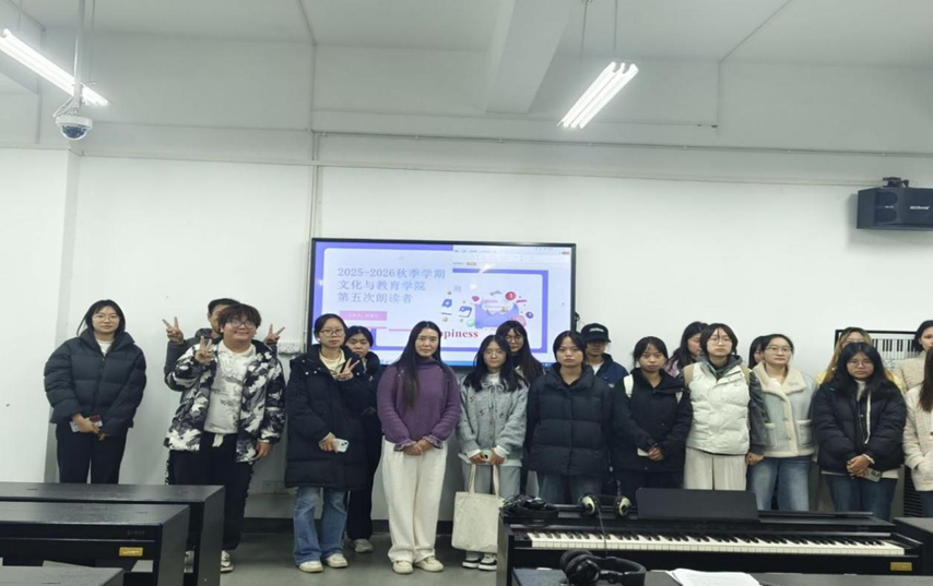 为激发学生对英语阅读的热情,筑起内心的自信之基,勇敢站上舞台、绽放自我,11月18日晚,文化与教育学院E-star Club英语社携手文化与教育学院学生第二社区,在三教一楼钢琴教室举办了以“Happiness”为主题的朗读者活动。此次活动邀请到文化与教育学院王薇老师担任现场嘉宾,文化与教育学院叶思宇同学主持。