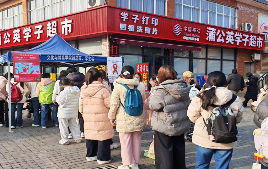 为提升防艾知识传播的有效性,以趣味互动方式传递科学认知、消除偏见,文化与教育学院青春健康同伴社携手文化与教育学院学生第二社区主办的“携手抗艾,一路同行”主题活动,于11月25日在绵阳校区商业街温情开展,共吸引120名同学参与,现场氛围轻松且富有温度。