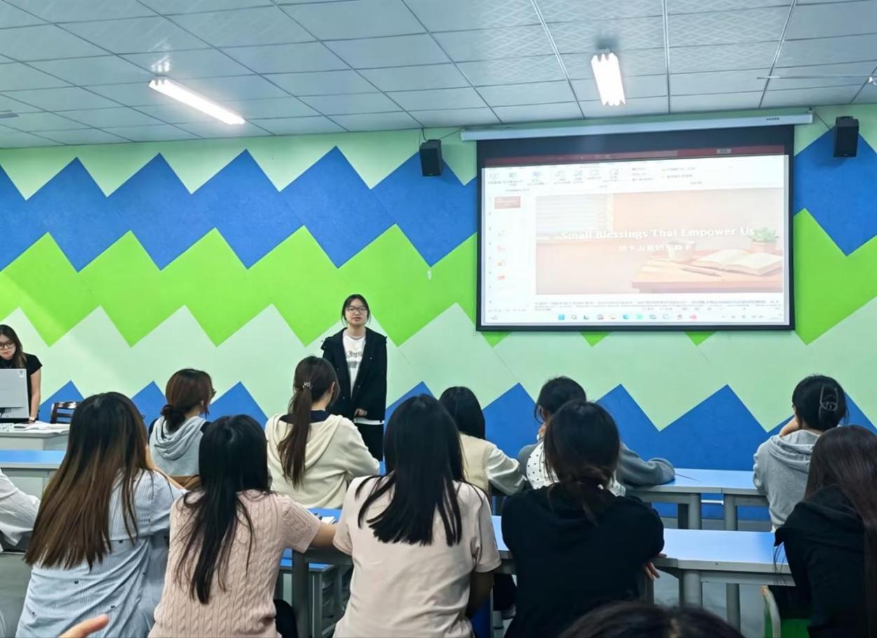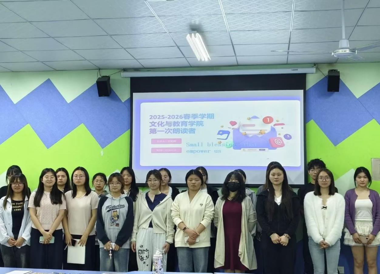 为引导学院全体学生在校园生活中感知身边微小幸福,以朗读传递温暖、汲取前行力量,文化与教育学院E-star Club英语社携手绵阳校区第二学生社区,于4月13日晚在三教一楼声乐室举办了面向文化与教育学院全体学生的2026年春季学期第六周“Small blessings that empower us”朗读者活动。本次活动由文化与教育学院教师李黎担任指导老师,学生许颖茜担任主持人,20名同学积极参与。