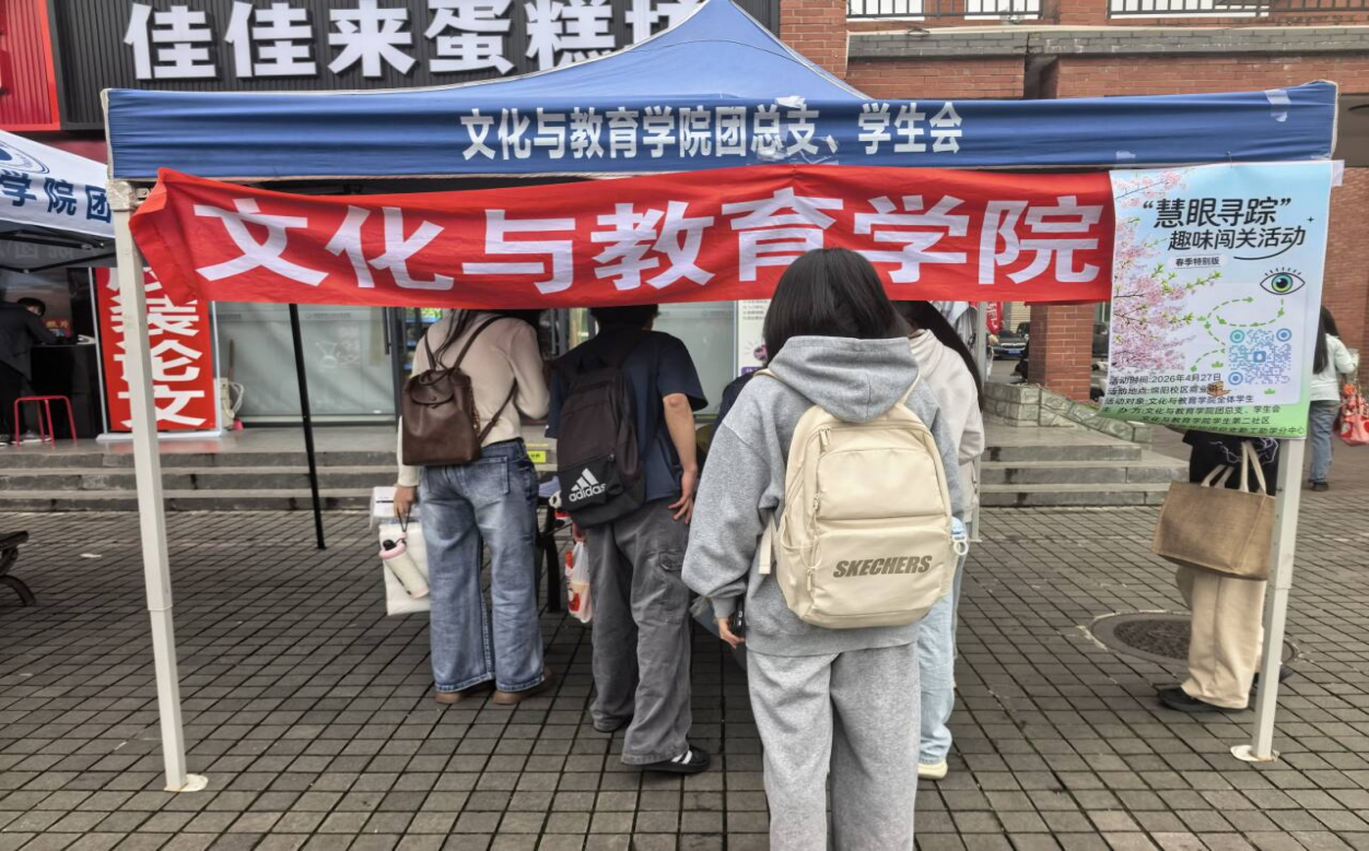 为丰富学院学生的课余生活,提升大家的观察能力、专注力与细节辨识能力,文化与教育学院团总支勤工助学分中心携手绵阳校区第二学生社区,于4月27日上午在商业街开展了面向文化与教育学院全体学生的“慧眼寻踪”趣味闯关活动,本次活动共吸引了240名同学参与。