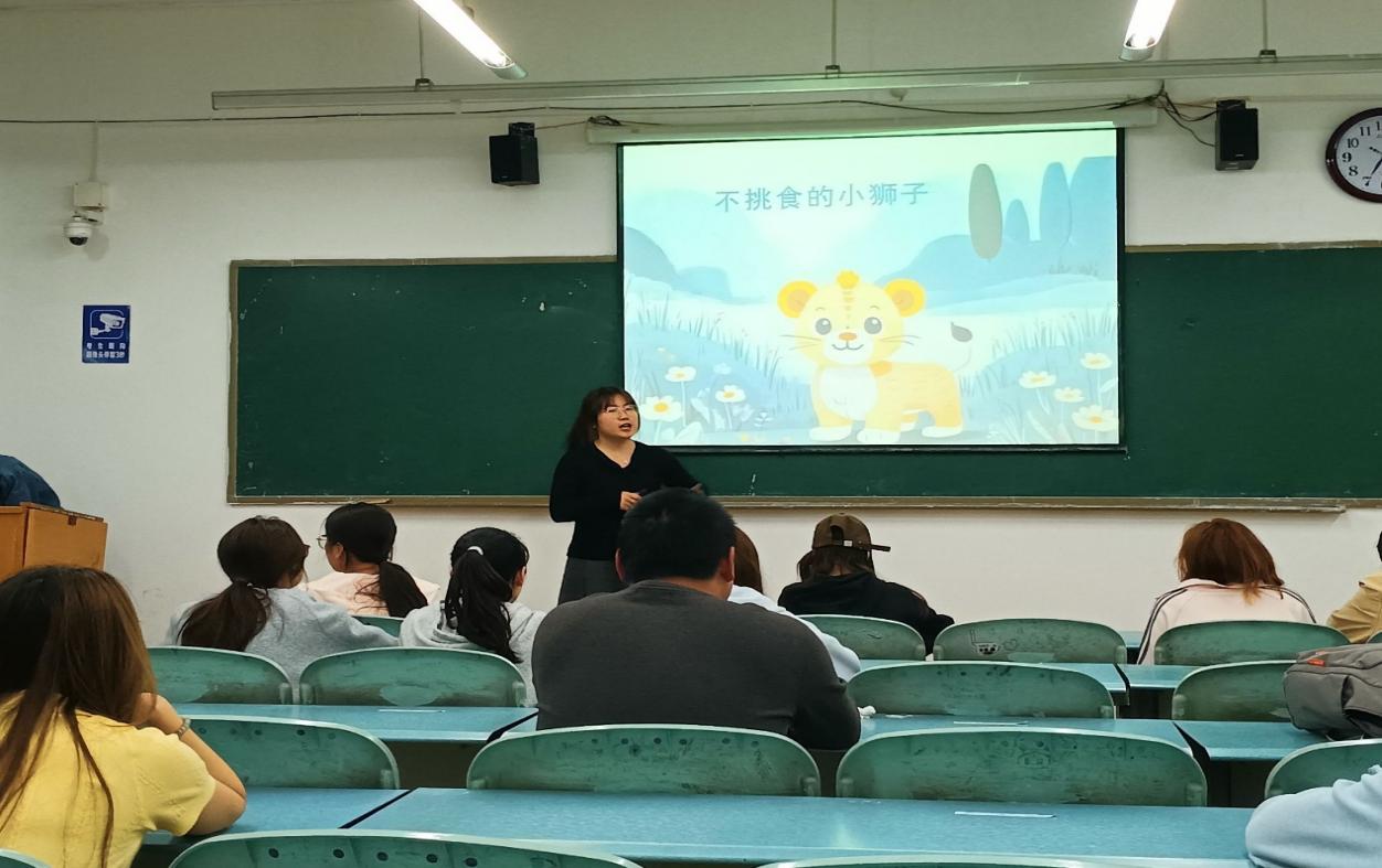 活动现场,同学们依次上台分享故事。大家准备充分,以饱满的热情和童趣的语气,结合手中的故事绘本展开讲述。有的同学用生动有趣的语言带领大家走进《挑食的小狮子》的世界,有的通过角色演绎、互动提问等方式多维度呈现内容。每位同学展示结束后,主持人进行细致点评,既肯定了语言生动、演绎细腻、教态自然等优点,也指出不足并给出改进建议。在场同学纷纷表示收获颇丰,对故事讲述技能有了更深刻的理解。活动尾声,黄欢老师为荣获第一名的邢震南同学、第二名的冷小凤同学、第三名的杨日则同学颁发奖品,并对同学们的表现给予高度评价,鼓励大家在后续学习实践中持续提升教学能力。