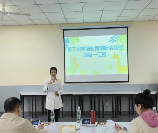11月4日,文化与教育学院学前教育创新实验班本学期项目——《幼儿园园所文化》主题汇报会在一教1106教室顺利开展。此次汇报会由教育系副主任郭丹主持,荣幸邀请到绵阳市开元实验幼儿园园长刘朝霞、四川幼儿师范高等专科学校学前教育学院副院长王威以及天府实验幼儿园园长羊媛担任评委,共同见证并评审学生们的创新成果。