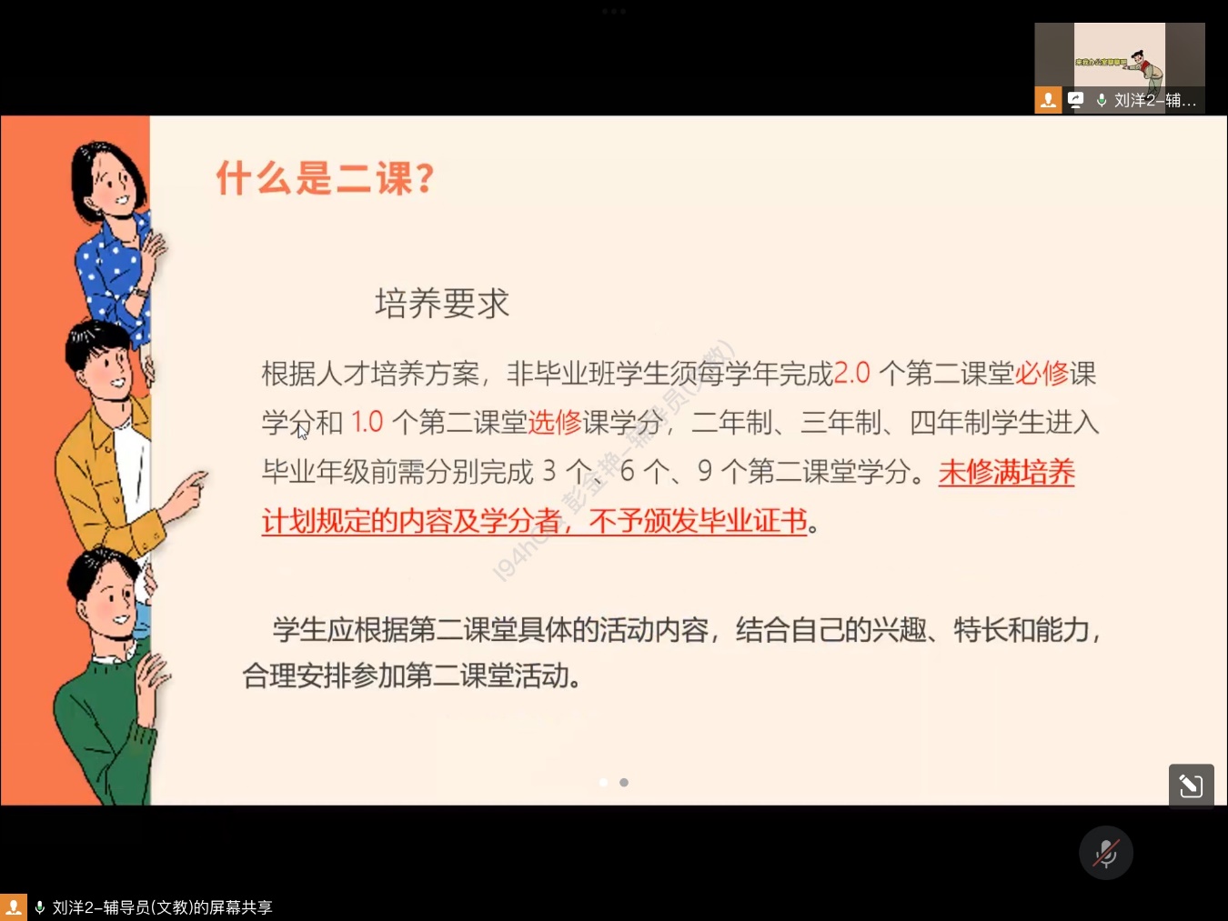 为帮助新入职辅导员全面掌握学生综合素质培养工作内容,以更好开展新学期相关工作,8月20日下午,学院组织开展了暑期辅导员师资队伍能力提升之学生第二课堂及素质拓展工作专题培训会。本次培训由刘洋主持,学院入职不满两年的辅导员参加。什么是第二课堂?为什么要开设第二课堂?培训会开始,刘洋首先系统阐释了第二课堂的定义及其重要性,对学校学分制以...