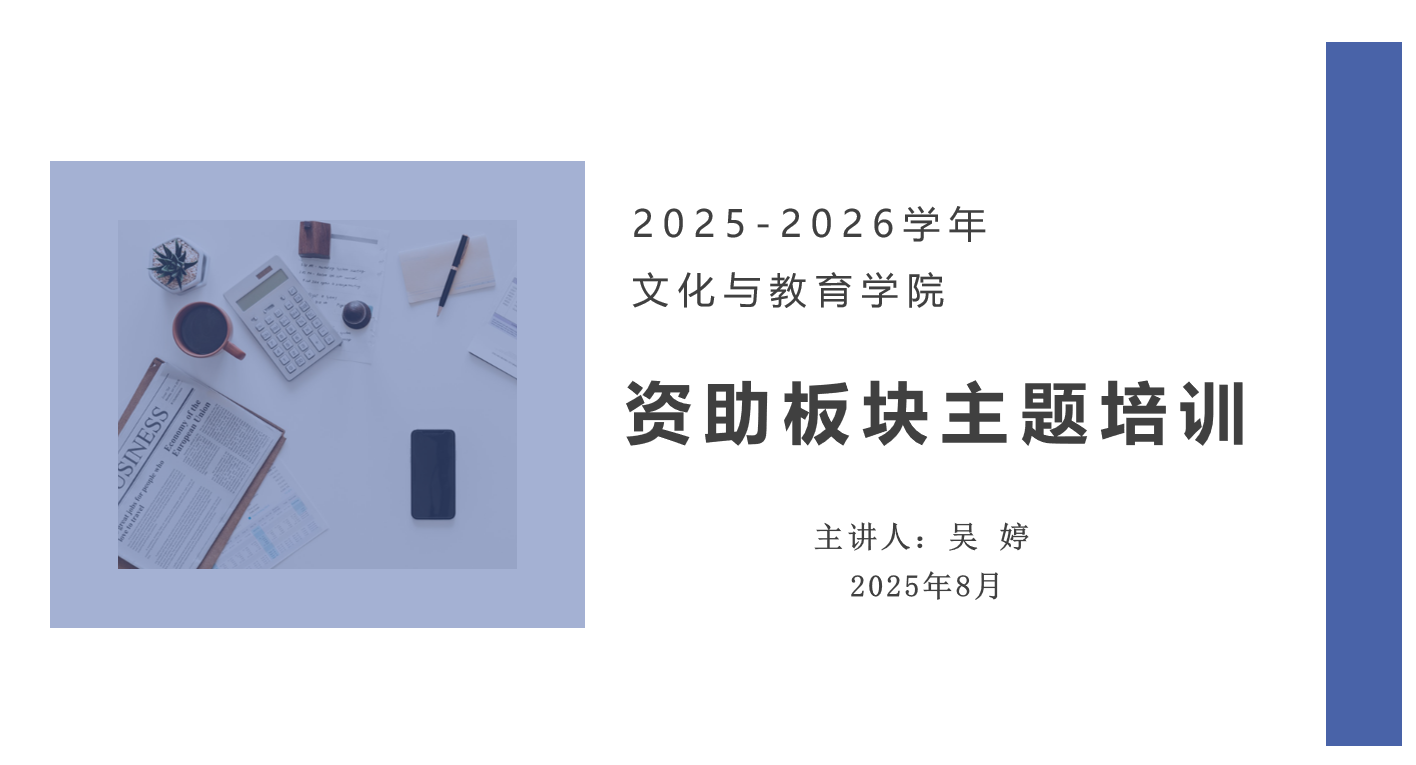 为加强辅导员队伍建设,提升新入职辅导员的学生资助工作能力,文化与教育学院近日通过腾讯会议开展了暑期辅导员能力提升系列培训的首场活动。本次培训聚焦资助工作专题,由吴婷担任主讲,面向学院入职不满两年的辅导员展开,旨在帮助其全面掌握政策要求、熟悉业务操作流程,为新学期资助工作筑牢基础。培训会上,吴婷围绕高校学生资助工作的重点内容展...